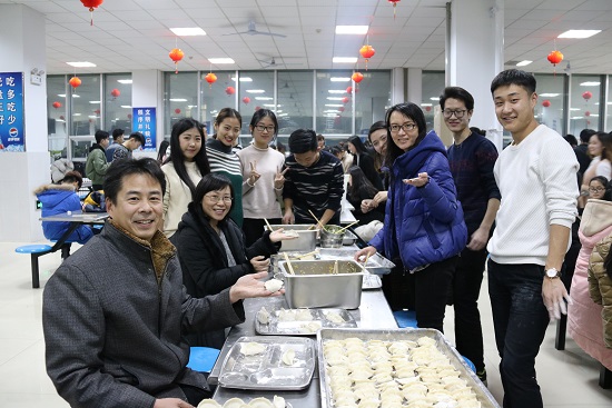 下午3点半,学生会成员到达餐厅,准备大显身手,食堂的师傅预先准备好了面粉和饺子馅。大家分工协作,积极性很高,迫不及待地尝试起来,有和面的、有擀皮的、有包饺子的,个个动作娴熟,不一会儿的功夫,面前的盘子里就摆满了饺子。大家有说有笑,相互切磋包饺子的技巧,比较着饺子的形状,现场欢声不断,笑语迭起。包饺子的过程是最为精彩的,各自有各自的包法,包出来的饺子也是各式各样,同时也显示出了各个地方的风俗习惯差异。大家的脸上都洋溢着兴奋与自豪,高兴地吃着自己包的饺子,活动在大家的欢声笑语中结束。