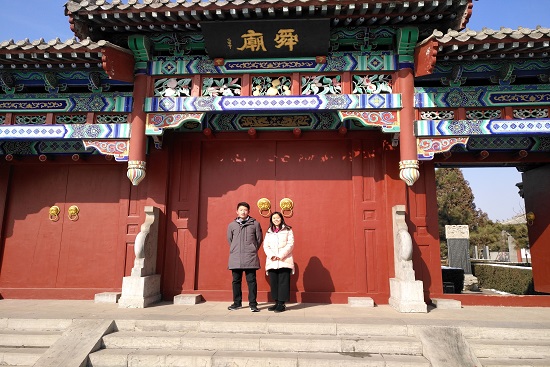 舜帝一直被后人尊为中华文化的道德始祖,以“孝”闻名天下,被尊为中国古代的“二十四孝”之首。为了更好的了解和传承大舜的德孝文化,两位同学在当地管理负责人的带领下,先后参观了启贤殿、睿妃殿、鼓楼、钟楼等极富代表性的建筑。通过参观这些构造独特、精美大气的建筑以及聆听管理人员的细致讲解,小组成员们了解到大舜启贤治水,拯救苍生,更有“让畔”、“让居”、“涂廪”、“穿井”等孝感天地的故事,从而更加深刻的理解了公天下、施仁政,宽五刑、广纳贤、善任贤的大舜文化。小组成员表示极大的感受到了近五千年舜文化历史带给我们的震撼,体会到了我国传统文化的悠久魅力,从而下定决心去学习这种德孝感恩的品质。随后,小组成员与在场的工作人员进行了密切交流,探讨了作为尧舜子民在经济高速发展的今天应该如何继承和发扬中华民族传统文化的精髓。最后,小组成员拍照留念。