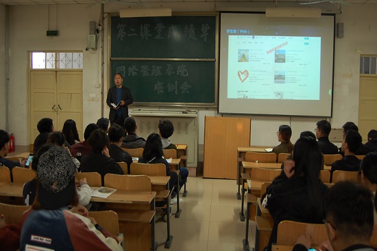 首先,刘乾同学用ppt向大家展示了“第二课堂成绩单”制度的政策要求,此制度是帮助学生们开阔视野、了解社会、提升综合素质而实行的制度。此后,又介绍了“第二课堂成绩单”网络管理系统即“到梦空间”的基本组成结构。“到梦空间”是由团委所管理的管理端和学生下载的Web端、移动端(APP)组成。从刘乾同学的介绍中,大家了解了“到梦空间”的功能。通过“第二课堂成绩单”我们可以更清楚透明的看见我们这一学期所参加的活动。