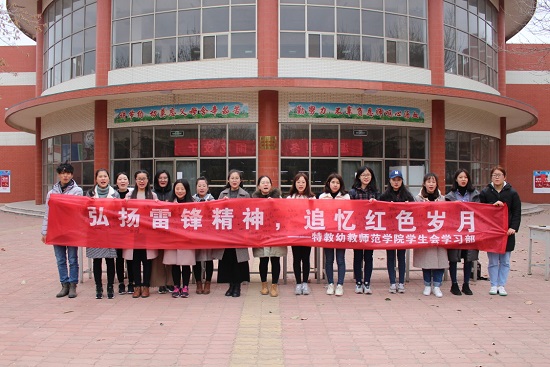 为弘扬雷锋精神,记忆红色岁月,践行学雷锋活动,2018年3月15日中午十二点,特教幼教师范学院学生会学习部在餐厅南门举行了"弘扬雷锋精神,追忆红色岁月"的横幅签名活动。《学习雷锋好榜样》歌曲的播放吸引了一大批同学的到来,学生会干部身体力行率先在横幅上签名,起到了良好的带头作用。随后,同学们争先恐后在横幅上签下自己的名字。