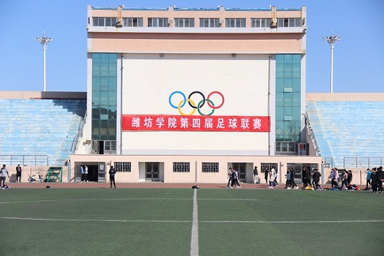 2018年3月16日,由潍坊学院体育运动委员会主办,学生工作处、团委、体育学院承办的潍坊学院第四届大学生足球联赛于下午三点正式开幕,由体育学院副院长耿道熙主持开幕式,潍坊学院副院长赵光强宣布本次足球联赛开幕。打响第一战的是由体育学院教师为主的教职工联队对阵化学化工与环境工程学院。