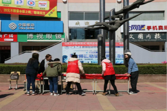 春风三月,外国语学院团总支学生会积极开展以“情系雷锋月、爱洒三月天”为主题的各项爱心志愿活动。3月16日上午,为在广大师生中更进一步宣传雷锋同志的优秀事迹、传递雷锋精神,外国语学院白鸽志愿者服务队于第二餐厅正门口前举行了“我与雷锋来自拍”活动及横幅签名活动。