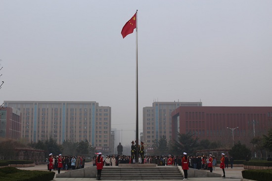 初春,晨间虽有薄雾笼罩着校园,却遮挡不住那一份鲜艳的红色。3月19日上午7点30分,特教幼教师范学院迎来了第三周的升旗仪式。空气中还带着些许寒意,国旗护卫队已迈着坚定有力的步伐走向升旗台,使得国旗在墨绿色的映衬下,显得格外耀眼。伴随着铿锵有力的国歌声,五星红旗冉冉升起,同学们的自豪之情油然而生,新的一周从此开始。
