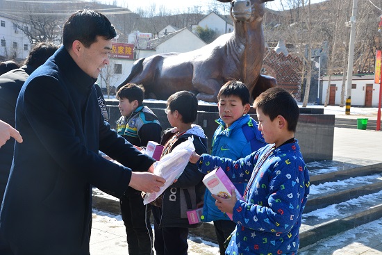 在捐赠仪式上,暖阳志愿者服务队为牛寨村的孩子们准备了许多的学习用品和保温杯。孩子们非常有秩序,排成一排整齐的站在广场上,从他们的脸上可以很明显地看出,这份礼物孩子们非常期待,脸上露出纯真的笑容,天真可爱,令人心中温暖。紧接着,院领导、于书记和志愿者们为孩子们分发学习用品,孩子们选择了自己喜欢的文具礼盒和保温杯,拿到文具的孩子们仿佛像拿到了一件宝物般,欣喜开心。他们很有礼貌的说了“谢谢”,志愿者们和孩子们相拥在一起,有的志愿者还流下了开心感动的泪水。这次的捐赠仪式仿佛是冬日里的暖阳,为孩子们送去了温暖和祝福,留在空气中的,是孩子们的欢声笑语。