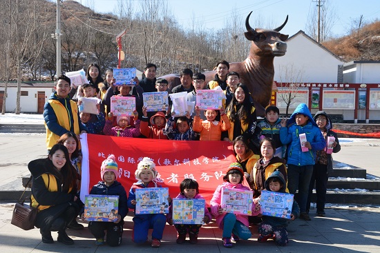 2月4日上午,天气晴朗,北海国际学院(歌尔科技学院)的院领导、应届毕业的学姐和暖阳志愿者服务队的成员们怀着满腔热忱,向美丽的临朐九山牛寨村出发了。冬天的牛寨村别有一番风趣,零零散散的雪花像白色的棉花般为大山披上了新衣,一棵棵坚韧挺拔的大树屹立在山坡上,是大山的守护者。暖阳之行的第一天,系领导和牛寨村的村委书记于兴平以及暖阳的志愿者们在广场上举行了捐赠仪式。