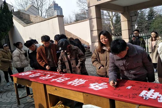 3月21日上午,美术学院“七色花”志愿服务队在荟萃楼内进行“弘扬雷锋精神,争做时代先锋”签名活动,美术学院团总支书记陈菲菲老师和全体学生参加了此次活动。这是新学期第一次举行的意义重大的活动,活动一开始就引起了很多人的关注。
