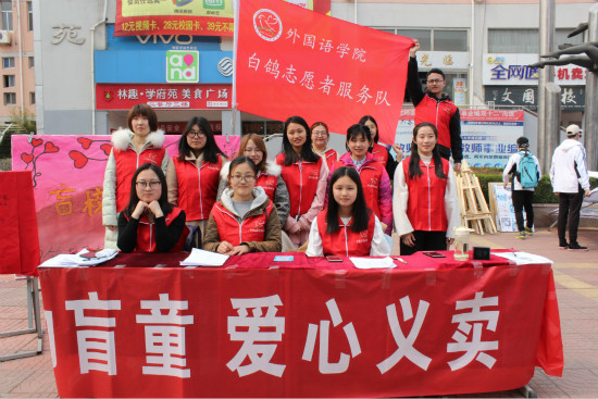有一群被上天特殊关爱的孩子,他们可能无法看到色彩的缤纷,却能感受到世界的温暖。社会各界人士都给予他们关爱和帮助,奉献自己的微薄力量。3月22日上午,外国语学院白鸽志愿服务队在潍坊学院二餐门口举办了盲校手工艺品的爱心义卖活动。