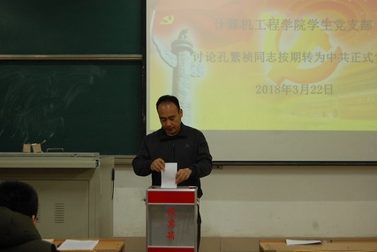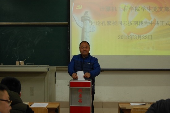 为加强党员队伍建设,提升党员队伍的素质,不断增强党的凝聚力与战斗力,3月22日下午三点计算机工程学院学生党支部在天一楼204教室进行了孔繁祯同志预备党员转正会议。会议由计算机工程学院学生党支部书记高连宏主持,团总支副书记肖甲波,辅导员侯刚、王慧榕以及学生党支部全体学生党员参加会议。