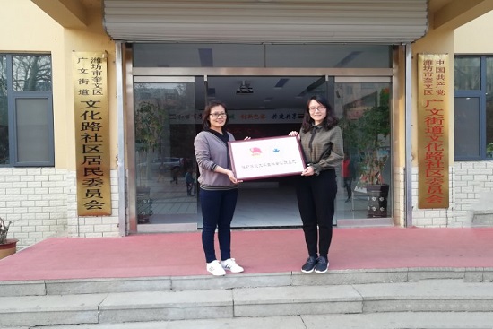 为发扬友爱、互助、进步的时代新风尚,培养同学们吃苦耐劳、奉献自我的精神,促进大学生走进社区志愿服务,弘扬志愿服务精神,潍坊学院传媒学院三色光志愿者服务队社会实践基地挂牌仪式于3月26日下午在潍坊市奎文区广文街道文化路社区举行。传媒学院团总支书记杨颂与传媒学院三色光志愿者服务队的同学们参加了本次活动。