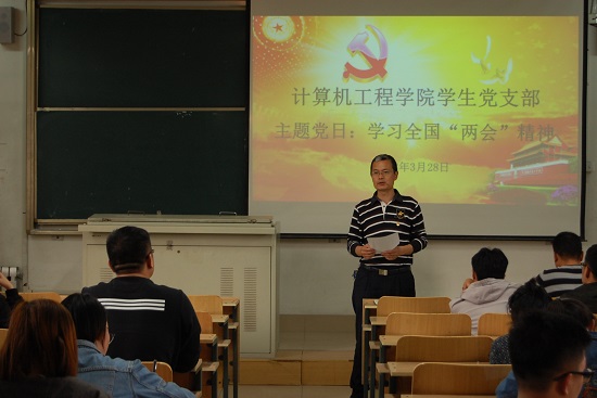 为落实习近平总书记在全国两会上的重要讲话精神。充分认识全国两会的重要意义,进一步增强“四个意识”、坚定“四个自信”,提高大学生的理论素养、决策能力,增强历史使命感,坚持以习近平新时代中国特色社会主义思想为指导,不忘初心、牢记使命,锐意进取、扎实工作,计算机工程学院学生党支部于3月28日下午4点在天一楼201教室开展了学习全国“两会”精神主题党日活动。本次活动由计算机工程学院学生党支部书记高连宏主持,学生党支部副书记肖甲波,辅导员侯刚,学生党支部全体学生党员和入党积极分子参加会议。