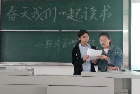 为深入贯彻学习党的十九大精神和潍坊学院第三次党代会精神,大力弘扬中华名族的传统文化,共建“书香校园”,图书馆、团委、工会联合举办了“春天,我们一起读书吧!”读书朗诵大赛,经济管理学院积极响应学校号召,于3月29日下午2点在致远楼512教室进行了朗诵比赛的初赛。