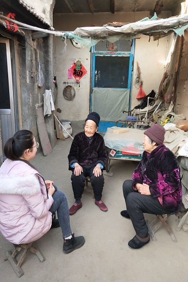 小组成员首先对三四十年代的人做了访问,通过与村中几位长者的对话,小组成员了解到在他们那时还处在抗日战争时期,人民生活艰苦,对于过年也是有心无力,对他们而言,贴个对联就好,鱼肉是奢侈的,做新衣也不敢想,年夜饭有点油水就很满足。他们把所有的期盼都放在了新的一年,孩子健康,庄稼能有大收成,就是他们最大的新年愿望。