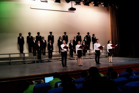 本次比赛,内容丰富多彩,有的朗诵中华古今名家名篇;有的歌颂祖国;有的述说青春梦想;有的吟唱亲情,还伴有唱歌、舞蹈等表演形式。每个学院的学生都信心满满,朗诵声情并茂,从服装到形式都别出心裁,不仅带给了观众听觉和视觉双重体验,还冲击着观众们的心灵。其中数学学院第三个出场,朗诵《走向属于你的明天》。朗诵者们一个个正装上台,他们自信大方,满怀激情。首先是老师们深情诵出“孩子们,你们的时代已经来临,加油吧!走向属于你们的明天!”一声声,一句句,无不表达着对广大学子深切的期望。随后,由学生继续朗诵,“祖国啊,伟大的母亲,要大步地走向属于您的明天,祝福您,祖国!”声音铿锵有力,感情充沛饱满。除此之外,在朗诵的同时,还伴随舞蹈表演,舞者身姿柔美,婀娜多姿,为比赛增加了视觉美感。现场气氛高涨,掌声不断。最后,数学学院得分92.25分。