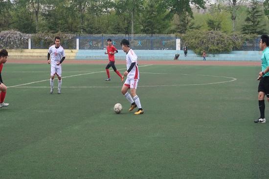 随着主裁判一声哨响,比赛正式开始。双方运动员们迅速进入了状态,展开了激烈角逐。在上半场的比拼中,22号王亚东依靠速度压迫对面后卫失误使我方获得角球机会,93号Hengneath开出角球, 27号邓飞高高跃起力压对方后卫头槌破门,经济管理学院赢得关键一分,期间计算机工程队虽多次进攻但始终没能进球。虽然天气寒冷但确没有阻挡球员们争胜的势头,比赛一度激烈到双方各有一名球员被红牌罚下, 并且多名球员被黄牌警告。下半场中,计算机工程学院队抓住机会,奋力进攻连进了两球,经管队员秉承经管绝不放弃 拼搏到底的传统精神拼搏到了最后一刻,虽然这场经管错失两连冠,但是我院仍然获得了亚军的好成绩,也是潍院第一支连续两次比赛都闯进了决赛的队伍, 取得了潍院联赛成绩上的历史性突破。