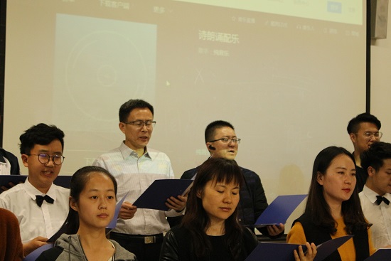 经过一周辛苦的排练,机电学院共有23名学生和4名老师参加了此次比赛,他们参赛的诗歌题目为《光的赞歌》。这23名学生和4名老师用铿锵有力的声音和充沛饱满的感情,诵出了诗歌的魂,带领着听众走进诗人的心田,使听众感同身受,体会到诗人对光的向往与渴求,特别是最后一句,“让我们从地球出发,飞向太阳”,其高亢的声音震撼人心,让听者满身血液澎湃,全场气氛达到高潮,掌声雷鸣。