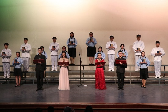 随着音乐的响起,此次朗诵比赛正式拉开帷幕。本次朗诵比赛的节目异彩纷呈,有铿锵有力的《举着火把当骨头》,有感情充沛饱满的《少年中国说》,有荡气回肠的《沁园春·雪》,有撩人心弦的《雨巷》,这些无不体现了中华儿女深深的爱国情怀。"吟风社"成员饱含深情诵读的《爱国赋》将强烈的爱国情感淋漓尽致地表现出来;在那震撼人心的时刻,两名同学翩翩起舞,柔美的舞姿与慷慨激昂的朗诵形成强烈对比,现场的观众也被他们高昂的情绪所感染,可谓掀起了本次比赛的高潮。此次活动的评委们公平公正,工作人员认真负责,最终特教幼教师范学院取得93.70分的优异成绩。