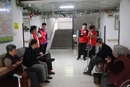 活动结束,志愿者为老人们合唱《相亲相爱》,老人们也在一边打着拍子哼着歌,其乐融融,难舍难分。时间就这样一分一秒过去,转眼间志愿者们就要离开了,爷爷奶奶们跟我们依依不舍的道别,希望下次见面能快点到来,虽然只有两个小时的活动,但志愿者们收获满满。