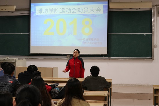 为鼓舞运动员士气,使所有运动员以最佳的状态投入到运动中,潍坊学院经济管理学院于4月23日晚上7点在致远楼412教室召开运动会动员大会。经济管理学院党总支副书记王海梅、学生工作办公室主任徐会全参加此次动员大会。