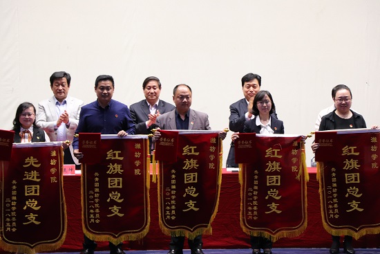 5月4日下午四点半,潍坊学院2018年五四表彰大会在图书馆报告厅举行。学校党委副书记王清明、党委宣传部部长单振涛、学生工作处处长李学军、教务处处长姜军生、工会主席许美坤、团委书记张晓静、团委副书记徐加金及各学院分管学生工作负责人,各团总支书记、副书记出席大会,团员青年代表和受表彰的先进集体、先进个人参加会议。