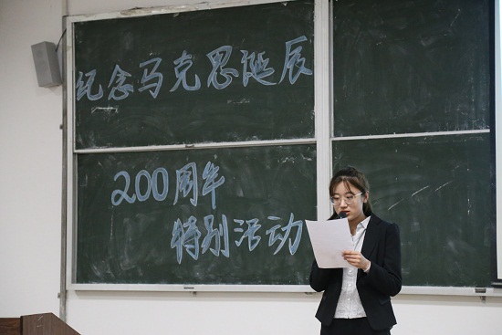 为纪念全世界无产阶级伟大导师马克思诞辰200周年,引导同学们积极学习马克思主义思想,进而在院内营造尚学博学笃学的良好学风,引导学生立志为学, 5月4日马克思主义学院于齐贤楼2109教室举办了以“不朽思想真理奏成绝唱,传承悠长时代再谱新章”为主题的纪念马克思诞辰200周年特别活动,马克思主义学院全体学生积极参加。