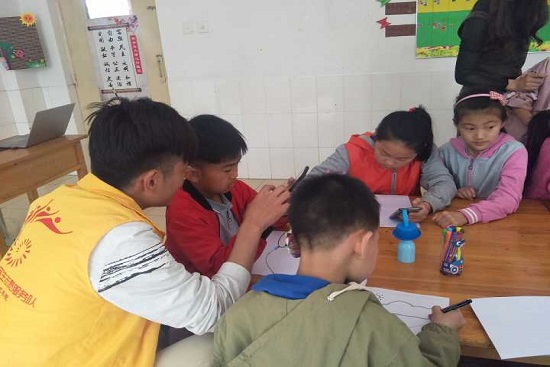 下午2时许,孩子们刚刚起床准备上课,志愿者们便将他们带来的益智玩具、水彩笔、折纸、图书等小礼物纷纷发到孩子们的手中,气氛立刻欢快起来。孩子们开心的竖起拇指,默契的和志愿者们的拇指“盖章”。志愿者们带着孩子们一起玩游戏,拿出蜡笔教小朋友们写字、画画,小朋友们拿着五颜六色的彩笔将他们喜欢的东西画在画稿上,仿佛所有的梦想都已跃然纸上,画完之后孩子们开心的拿着画稿在教室上边跑边笑,互相传阅并分享着自己的喜悦。虽然语言有障碍,但是却一点也不影响志愿者与孩子们的沟通,无声的语言深深感动了每一位志愿者,拉近了他们之间的距离。“谢谢大哥哥大姐姐来看我们,给我们带礼物,和我们一起玩游戏,我们很开心,你们下次还可以再来吗?”孩子们用手语比划着,说出他们心中强烈的愿望,在场的志愿者和老师都被深深的感动着,用力的点了点头。