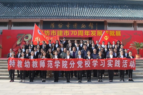 时光荏苒,岁月如梭。2018年,潍坊迎来了建市七十周年。辉煌壮丽的七十年间,潍坊市取得了令人瞩目的重大成就,发生了翻天覆地的巨大变化。为纪念潍县战役胜利70周年和五四运动99周年,大力弘扬熠熠生辉的潍县战役精神和五四精神,切实增强入党积极分子的责任意识与担当意识,充分发挥其在生活、工作和学习中的骨干作用和先锋模范作用,特教幼教师范学院于5月4日上午9点组织2018年上半年入党积极分子和学生党员到潍坊市博物馆参观了“潍坊市建市70周年发展成就展”。特教幼教师范学院党总支副书记赵树江,综合办公室主任吴靖,学生工作办公室主任沈杰,团总支书记窦荣坛,辅导员周淑熙、刘红秀、郭晶、田昌和吉飞与同学们一起进行了参观学习。