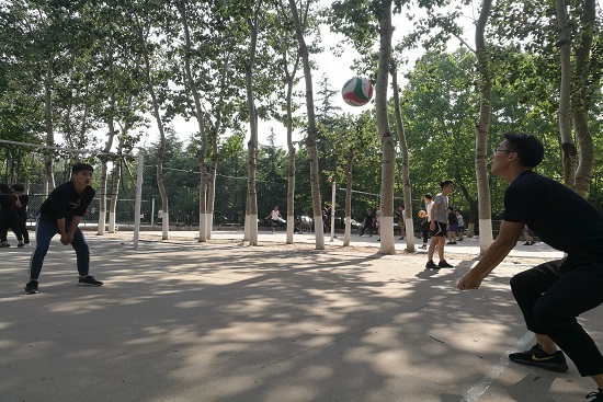 天气虽然有些炎热,但是仍能看到队员们激情澎湃的训练热情以及青春阳光的精神风貌。首先,队员们进行热身运动,短暂的热身过后,队员们进行了托球训练。托球训练重在培养集体意识,特别展现一支队伍的团队力量,每一位队员都要集中精力全力应对。在传球过程中,团队的协作是必不可少的,传媒学院男子排球队的队员们通过精妙的配合表现极佳。最能展现传媒学子风貌的是实打实的对决阶段,一次次的发球、进攻和防守,队员们不断磨合,为比赛做了充分的准备。