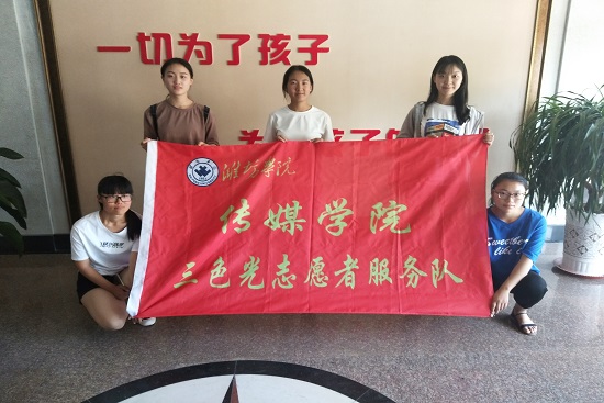在“六一”儿童节来临之际,传媒学院三色光志愿者服务队的同学们来到潍坊高新区康华教育培训学校看望自闭症儿童。志愿者们满怀爱心与热情,毫无畏惧烈日下的炎夏。