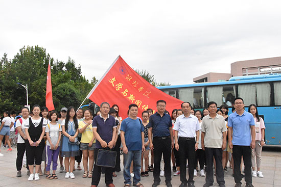 8月31日上午,文学与新闻传播学院2016级汉语言专业全体同学乘车奔赴各中小学开始为期四个半月的实习支教工作,副校长丁子信在教务处和有关负责同志的陪同下,与文学院院长张德升、党总支副书记姜廉毅、辅导员老师王伦刚、李静为实习支教学生和带队指导教师送行。