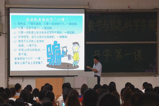 为了让刚报到的新生了解大学生活,更好的融入大学集体生活中,数学与信息科学学院于9月9日上午,在人合楼8122教室上了开学第一课――新生入学教育课,由数学学院党总支副书记郑栋鹏老师主讲。