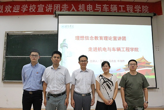 为引导新生坚定中国特色社会主义道路自信、理论自信、制度自信、文化自信,引导学生进一步坚定理想信念,确立人生奋斗目标,把个人梦融入到中国梦之中,增强对学生的爱国爱党教育。9月13日晚七点,知新楼4109,学校理想信念教育理论宣讲团走进机电与车辆工程学院。宣讲团的主讲人分别是法学院学生工作办公室主任王秀慧、化学化工与环境工程学院团总支副书记马永生及物理与光电工程学院2015级学生牛浩然。机电学院党总支副书记黄本玉、团总支书记尚志杰及2018级全体同学参加宣讲会,会议由机电学院党总支副书记黄本玉主持。