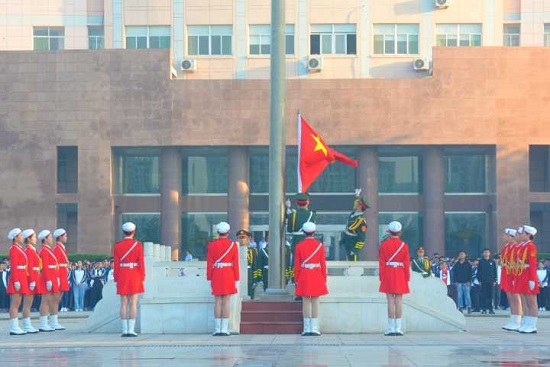 升国旗主题教育活动的开展,有利于进一步促进学院优良学风的形成,相信在今后的学习生活中,同学们能时刻牢记“厚德、博学、求实、创新”的校训,刻苦学习,立志成才,为实现中华民族伟大复兴的中国梦贡献力量!