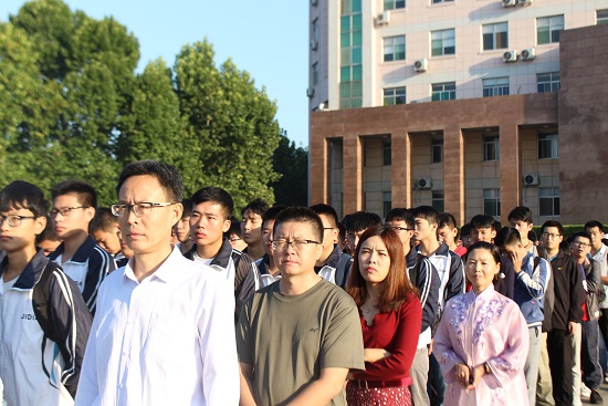踏着朝霞,我院学子提前来到行政楼广场前等候,充分展现出同学们积极向上的态度。国旗护卫队整装待发,全场气氛庄严神圣。伴随着雄壮的国歌,五星红旗冉冉升起。