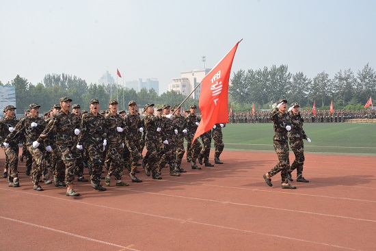 升国旗、奏国歌过后,军训科目表演正式开始,美术学院二营十连一排二排作为代表参加分列式表演。他们迎着凉爽的秋风,迈着坚定的步伐,英姿飒爽、神采奕奕。他们拿出最饱满的精神来接受这次检阅,他们信心满满展现出了属于美术学院的激情与活力。军训不仅仅是对他们身体上的锻炼,更多是精神上的磨砺,军训中他们深深体会到“掉皮掉肉不掉队,流汗流血不流泪”的含义所在,他们也学会了不怕苦不怕累的奋斗精神!