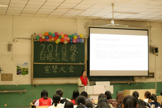 为传承白鸽志愿服务精神,壮大志愿服务队伍,外国语学院青年志愿者联合分会于10月30日晚在3237教室举办白鸽志愿者培训暨宣誓大会。青年志愿者联合分会的全体成员及2018级白鸽志愿者参加了此次会议。