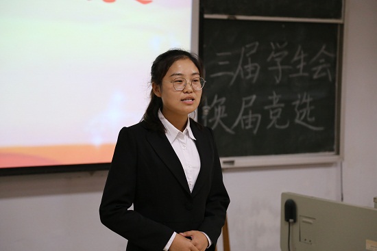 本次参与竞选的职务有主席和秘书处、学习部等一系列的部长职务。首先上场的是2017级思政班的孙印广,他本次竞选的职务是外联部部长,他谈了一下自己的对于外联部的看法以及自己对外联部的理解,其中不乏独特的见解,最后,他说道:“如果我竞选成功,我一定会继续努力,为马院的发展贡献一份力量。”随后就是竞选主席职务的2016级同学李晨曦和董淇方,她们已经在学生会锻炼过一年,礼仪、谈吐都让台下的同学眼前一新,也让他们学到了很多。各位竞选人纷纷上台展示自己,并从自身特点,从部门认知,亦或是对于学生会的改进与未来,展现一幅美丽的蓝图,同时也展示了学生会一年来的点点滴滴,从最初的青涩到如今站在这里竞选,从磕磕绊绊到日渐熟练,未来也需要他们携手并进,团结一致,就像张晓君所说要做到“仰望星空,以服务同学为导向,脚踏实地,创造具有团队协作精神,竞争精神的高质优秀学生会”强调了团结协作在实际工作中的重要性。最后,团总支副书记崔秀玲做了意义深刻的总结发言,感谢大家来竞选,并希望大家能坚定努力工作的信念并在学生会的工作中受益的同时也希望新一届学生会干部能够继续传承我院优良传统,共同努力做到最好,再创新的辉煌!