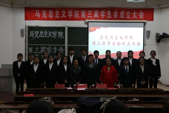 11月11日,马克思主义学院第三届学生会成立大会于齐贤楼2109教室隆重举行。本次大会由学生会秘书长贾文娟主持,马克思主义学院党总支书记陈子文、学生工作办公室主任赵静、团总支副书记崔秀玲莅临指导,第三届学生会全体成员积极参加。