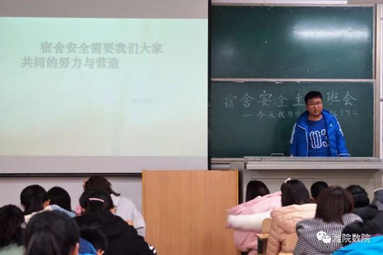 为了增强同学们的安全意识,抓好宿舍安全的教育工作。应用统计学(校企合作)专业于11月18日晚在人合楼 8129召开了“宿舍安全教育”主题班会。同学们认真听习了此次班会。
