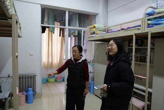 为结合学校安全月工作,切实推进学生公寓安全防范工作,消除宿舍安全隐患,规范学生住宿行为,营造整洁文明的公寓环境,2018年11月19日上午日马克思主义学院赵静和崔秀玲两位辅导员与院自律部成员深入学生宿舍进行安全、卫生检查工作。