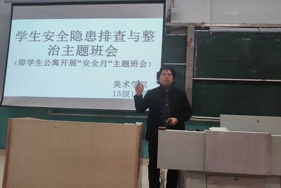 为进一步营造安定良好的校园环境,提高同学们的安全防范意识。11月20日,美术学院召开了“安全月”学生校园安全教育主题班会。班会由各年级辅导员主持召开,美术学院全体同学参加。