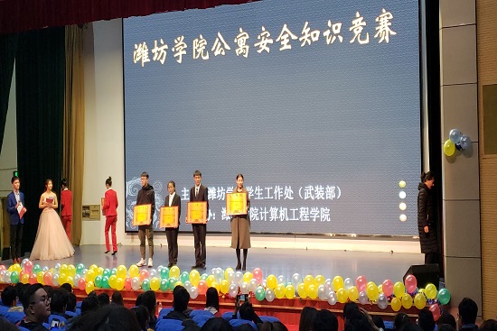 11月27日下午,由学生工作处主办,计算机工程学院承办的以“提高安全意识,共筑和谐潍院”为主题的公寓安全知识竞赛决赛在图书馆报告厅举行,历史文化与旅游学院在此次竞赛中荣获三等奖。