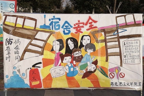 为维护公寓安全,保护潍院学子的宿舍安全,提高同学们的安全意识,做到自我监管自我防范,提高自己对于突发事故的应对能力,大学生自律委员会于11月29日在图书馆楼前广场举行了“公寓安全教育宣传看板展览活动”,马克思主义学院积极参加,认真准备,精心制作了优良的展板。