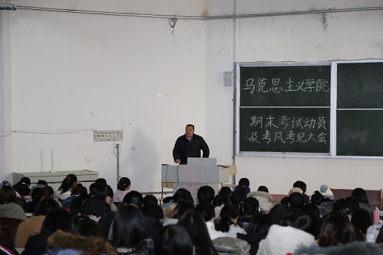 时光飞逝,不知不觉本学期已接近尾声。为严肃考风考纪,弘扬优良学风,马克思主义学院于12月23日下午在齐贤楼2109教室召开期末考试动员及考风考纪大会,本次大会由学生工作办公室主任赵静老师主持,副院长于民老师、实践中心主任张子林