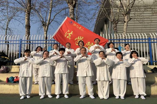 “台上一分钟,台下十年功”,法学院代表队于第一组进行展演,老师们认真的跟随旋律,尽情享受其中,用心做好每一个动作。一个个扎实的马步,好似深扎于土地屹立不倒的遒松;一个个柔和的动作,像是推掉了一切烦恼般地轻快;一个个专注的眼神,仿佛整个世界只剩下自己。他们的动作和谐自然、缓慢柔和、轻松洒脱、丰富多姿,加上太极拳所独俱的温文尔雅、从容不迫的风度和气韵,尽展法学院教职工们的精神风貌。时光不负有心人,有付出就有回报,最终法学院代表队荣获三等奖。