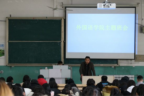 本学期的学习生活已接近尾声,期末考试临近。为弘扬外国语学院优良的考风考纪传统,端正同学们的考试态度,外国语学院于12月26日上午在至善楼3237教室召开“严肃考风考纪,争做诚信学生”的主题班会,外国语学院院长韩泽亭、副院长张学祥、18级辅导员卢术强及18级全体学生出席并参加本次主题班会。
