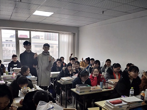 翌日,辛泽坤、王文轩等同学来到母校,为高三的同学们进行了一次别开生面的宣讲活动。活动由辛泽坤同学主讲,他用生动幽默的语言向各位同学介绍了潍坊学院的学院概况与师资力量,介绍了自己的大学生活以及自己平时学习的经验。随后宣讲进入互动环节,高三的同学们就如何在最后的冲刺阶段提高自己的英语成绩、如何提高自己的学习效率等问题,积极主动的向辛泽坤、王文轩两位同学咨询,两位同学一一进行解答。活动结束后,辛泽坤同学在黑板上留下自己的联系方式,他表示随时欢迎同学们与他交流学习及生活上的经验,同学们表示听了此次宣讲活动,自己的收获很大。