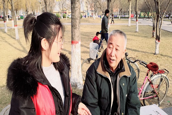 冬日可爱,微风和畅。杨笑晗等同学来到广场开始走访调研活动。首先,志愿者们来到一位正在压腿的奶奶身边,说明来意后,奶奶笑着说:“改革开放好呀!我们这些老人的退休工资年年都在增加,还有医疗保险,在好多方面都享受优惠照顾呢!”改革开放以来,国家重视老年人的社会保障问题,建立养老保险制度,老年人的基本生活得到保障。随后,志愿者们又找到了一位老大爷,询问他对于改革开放的看法,大爷乐开了花:“改革开放让我们的生活条件提高了!活动也丰富多彩,我们一群老人没事就出来跳跳舞,打打太极,几个老头老太太还聚在一起出去旅游呢!”改革开放不仅满足了人们的基本生存条件,还大幅度提高了人们的生活质量。最后,志愿者们访问了一位正在看报的叔叔,询问他对新中国成立以来所取得的成就的看法,他说:“新中国成立以来,我们在衣食住行各个方面都有了极大的改变与提升,这一切都多亏有国家政策在背后做保障,总之感谢国家啊!”志愿者们听完叔叔的回答后内心感慨万千,改革开放以来,我们国家脚踏实地为人民谋福祉,真正的做到了让人民幸福。
