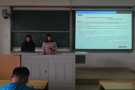 活动伊始,马凌宇简要阐述了活动的流程与主题。随后,她又对寒假社会实践活动的开展和材料报告的收集与评议情况做了详细的回顾与总结。接着,同学们对本次活动进行了相关的讨论,交流有关寒假社会实践活动中的感想与经历。学生代表牛国华和吴圣樱分别上台阐述了自己所开展社会实践活动的主题、内容与感想。牛国华讲述了以“实践活动研习进校园”为题的活动,并表示,凡是提出的问题,必然要给予其一个完美的解答,否则问题的提出便失去了意义。这体现了她严谨的学习和研究态度。吴圣樱则对于家乡改革开放四十年以来的变化做了介绍。在此基础上,她还指出,“纸上得来终觉浅,绝知此事要躬行”,实践是人这一生必须要做好的课题。对此,她提倡大家应将实践精神贯彻到生活的每一个细节中去。最后,马凌宇对同学们的讨论情况做出了总结,并鼓励大家重视实践,积极参加实践活动,丰富大学生活。