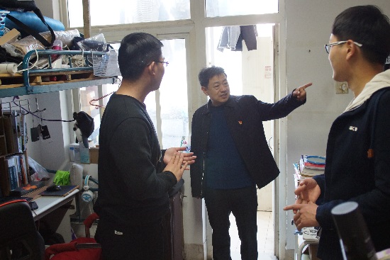 为了规范学生行为,加强学生的宿舍管理,检查宿舍是否存在安全隐患。3月14日中午,数学与信息科学学院党总支副书记郑栋鹏老师、学生工作办公室主任王秋霞老师、团总支副书记王鑫莉老师、党总支组织员张德辉老师和辅导员吕静老师一同检查了数学学院学生的宿舍。
