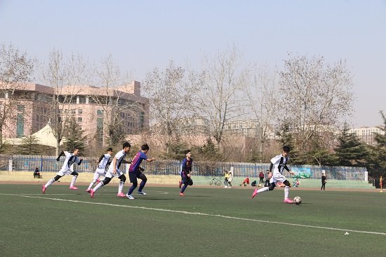 3月16日上午,历史文化与旅游学院足球队与传媒学院足球队的比赛在足球场拉开序幕,该院部分老师及同学到场观看,为参赛选手加油助威。